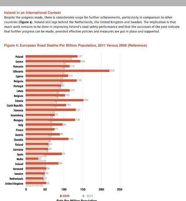 Minister Varadkar said: "Ireland has made huge advances, and was the fifth safest country in the EU in 2011. Ireland outperformed the EU average in reducing road fatalities by 12% in 2012…We now want to make Ireland one of the safest countries in the EU in terms of road deaths, if not the world."