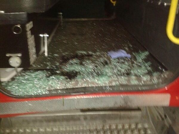 The fire brigade did not escape unscathed either as the side window of the truck was smashed.