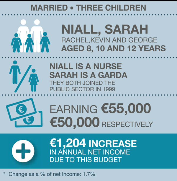 • A married couple with two children, with one income in the public sector of will see an annual increase of (€11.50 / week)
