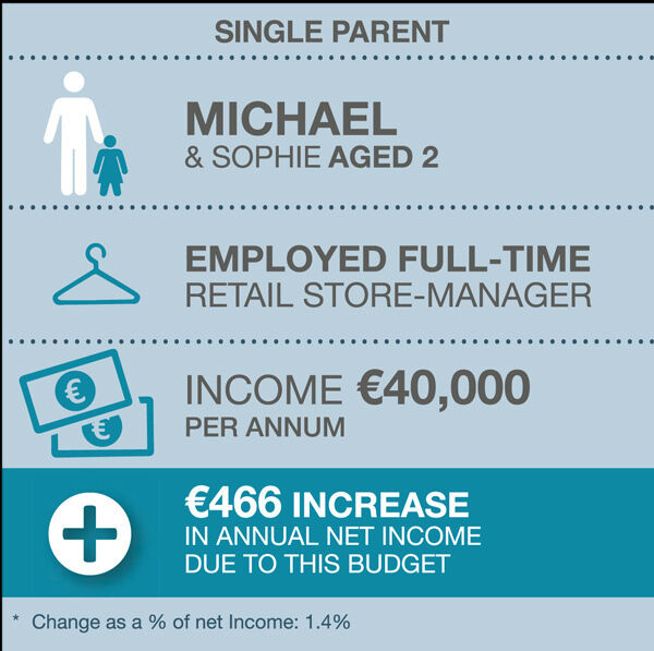 • A single parent with an income of €40,000 will receive an extra €466 annually (€8.96 / week)