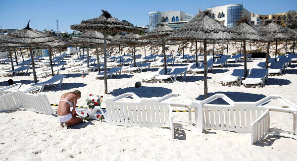 #TunisiaAttack. On the beach in front of the Riu Imperial Marhaba Hotel in Sousse, today. #AFP Kenzo Tribouillard pic.twitter.com/4kmcoSjvOo