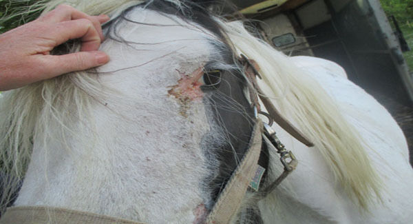 A mare suffering from severe photosensitivity, with horrific lesions on her body and face has been taken into care by the ISPCA.