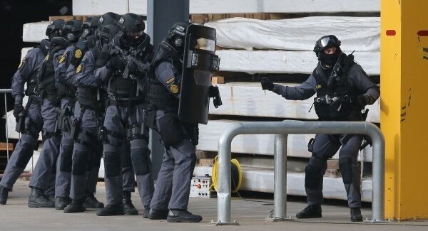 Later a suspect acting suspiciously on the dock watching the activity at sea took a man and woman hostage and sought refuge in a port warehouse.