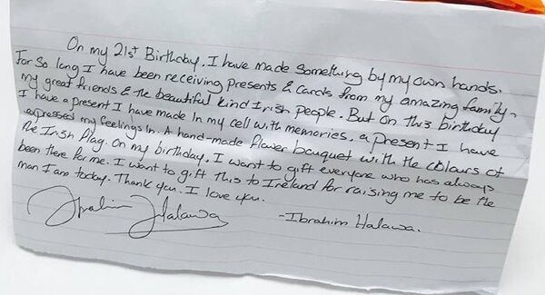 Irishman Ibrahim Halawa, jailed in Egypt, crafts paper bouguet in flag colours ahead of birthday