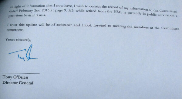The head of the HSE conceded the situation in a letter to the Dáil's public accounts committee last night, contradicting his previous evidence and two other attempts to clarify the issue to the cross-party group.