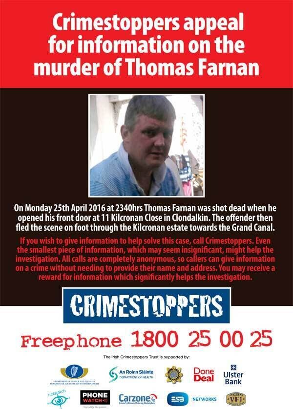 37-year-old Thomas Farnan was killed by a lone caller shortly before midnight on April 25 2016.