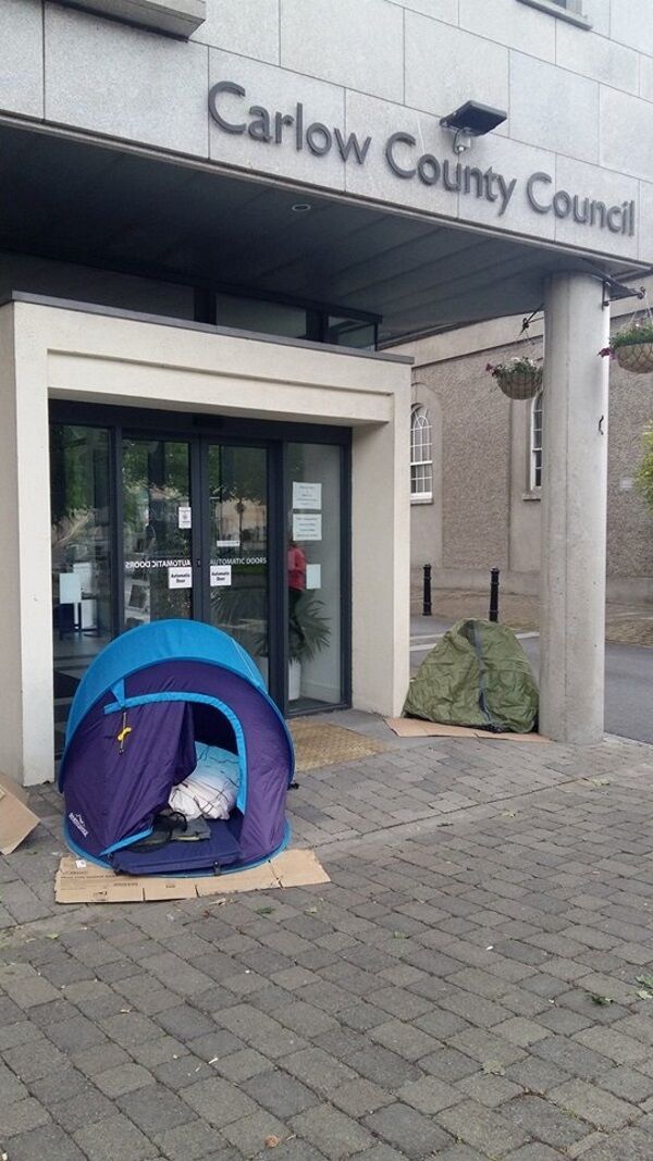 A homeless woman who was arrested for trespassing during a sleep-out protest at Carlow County Council offices last night is continuing her protest outside the offices again tonight,