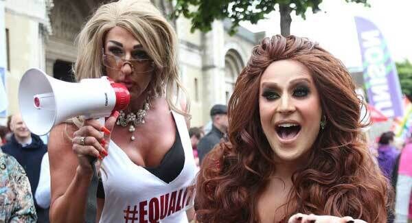 Thousands of demonstrators show support for same-sex marriage in Belfast