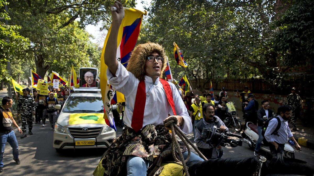 In India’s capital, New Delhi, at least 3,000 Tibetans marched about two miles through the centre of the city carrying Tibetan and Indian flags.