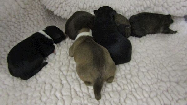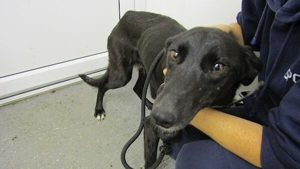 The lurcher dog, believed to be two years old, and her six newborn puppies were discovered chained to a gate in a field near Elphin, Co. Roscommon by a member of the public. The person alerted the gardaà and the ISPCA.