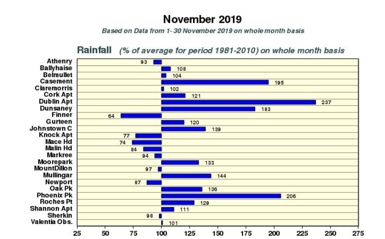 Dublin Airport had its wettest November since 2002, according to provisional figures from Met Eireann.