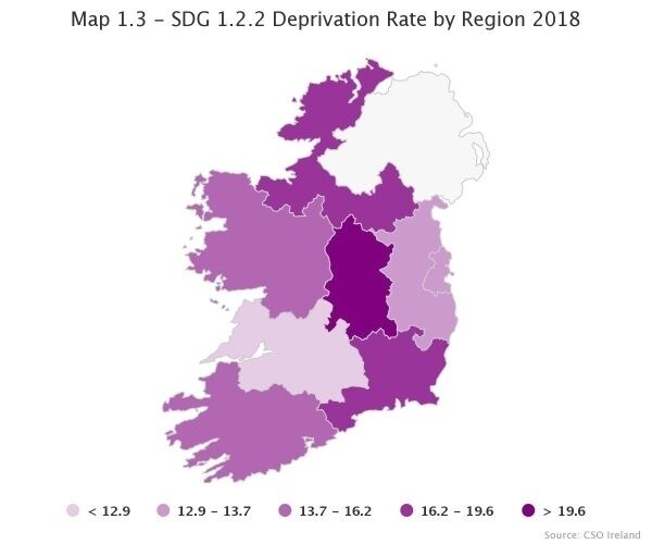 The highest deprivation rate in the country was in the Midlands region (20.3%) while the lowest was in the Mid-West (12.8%).