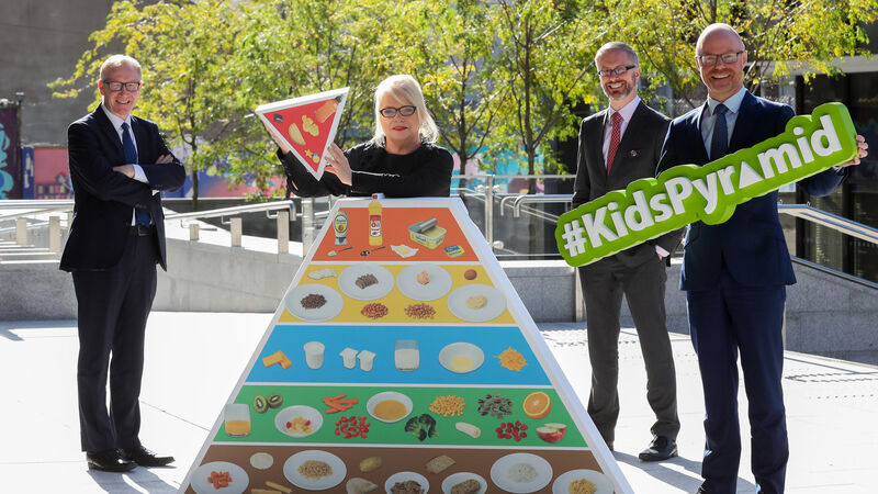 Above from left, Minister of State for Public Health and Well Being Frank Feighan TD, health promotion policy adviser Ursula O'Dwyer, Minister for Children Roderic O'Gorman TD, and Minister for Health Simon Donnelly at he launch of the 1st ever National Healthy Eating Guidlines for one- to four-year-olds at the Department of Health on Baggot Street Dublin. Picture: Gareth Chaney/Collins