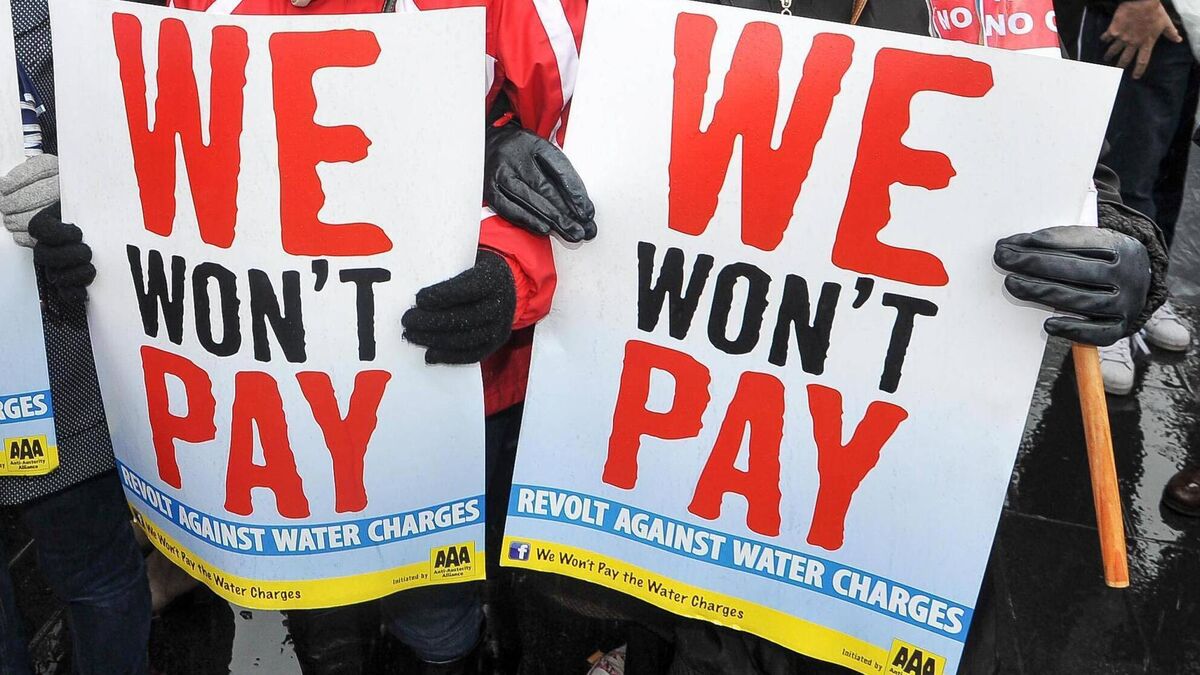 Protest signs from an anti-water charges protest march in Cork city in 2014. Picture: David Keane.
