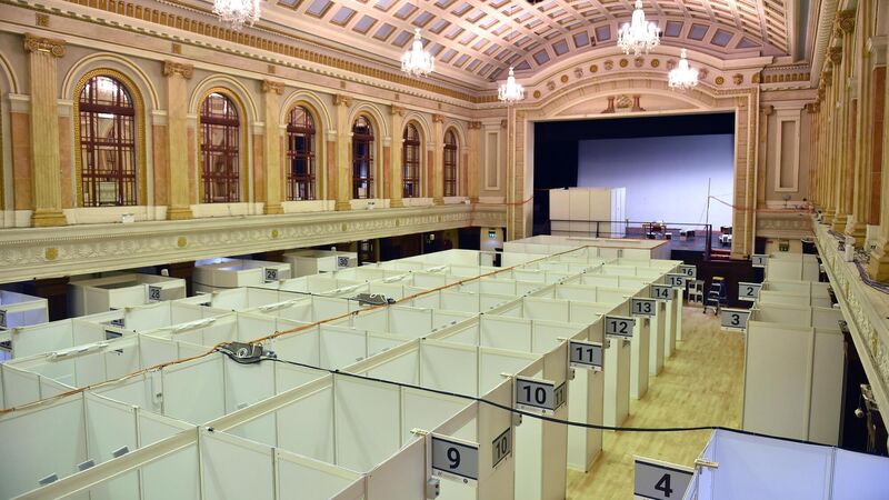 Booths in mass vaccination clinic in Cork City Hall. Picture: Dan Linehan