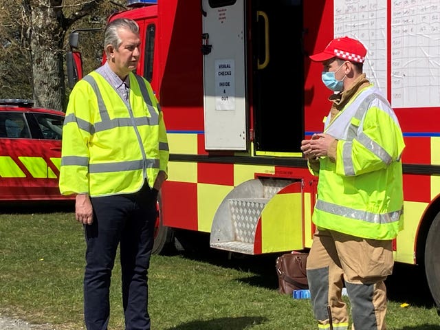 Firefighters in the operation against a huge gorse fire which spread across the Mourne Mountains in Co Down over the weekend (Department of Agriculture/PA)