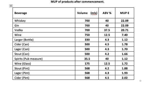 For those who already pay more than the above prices for their alcohol, the introduction of MUP will have little impact.