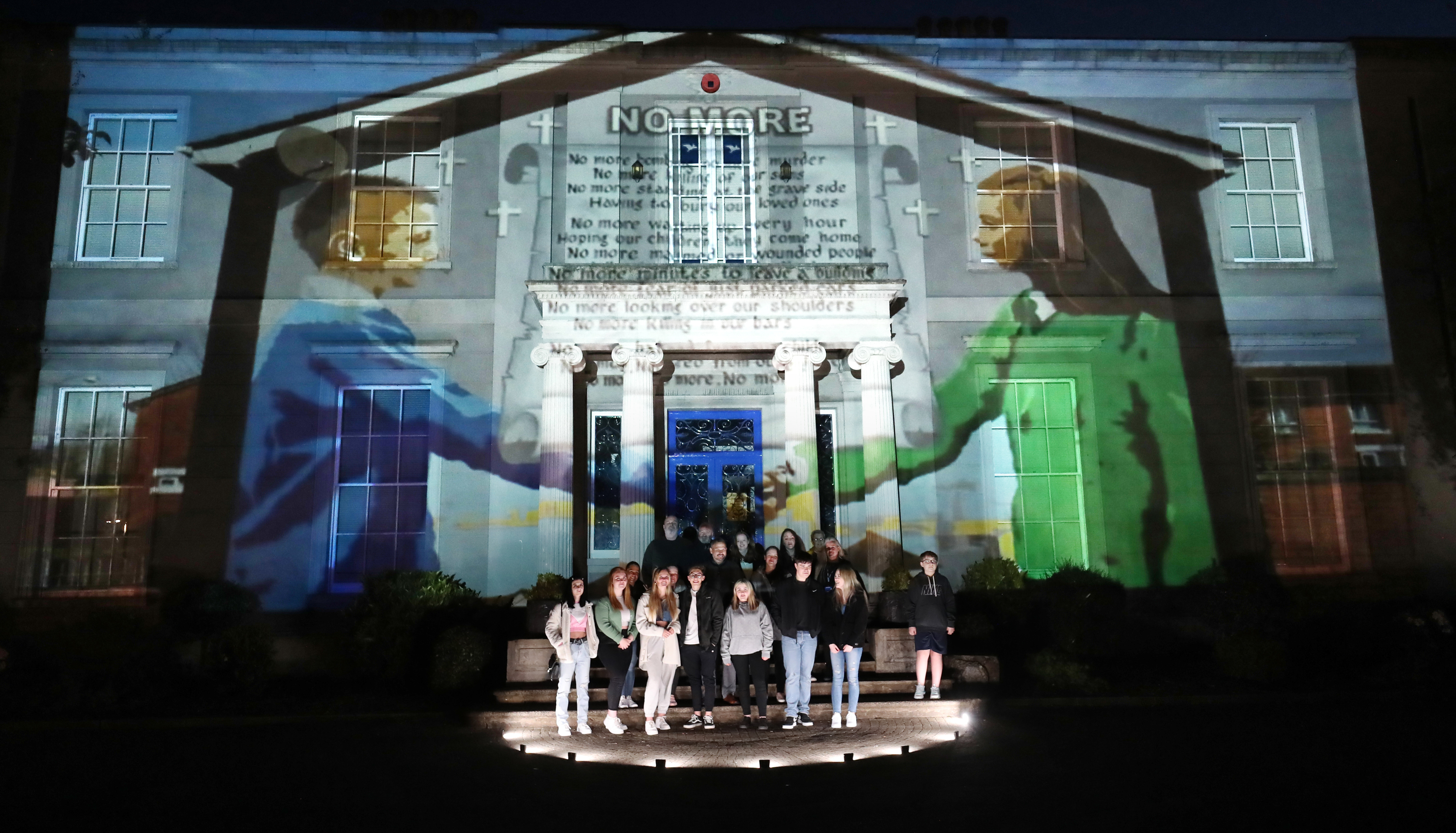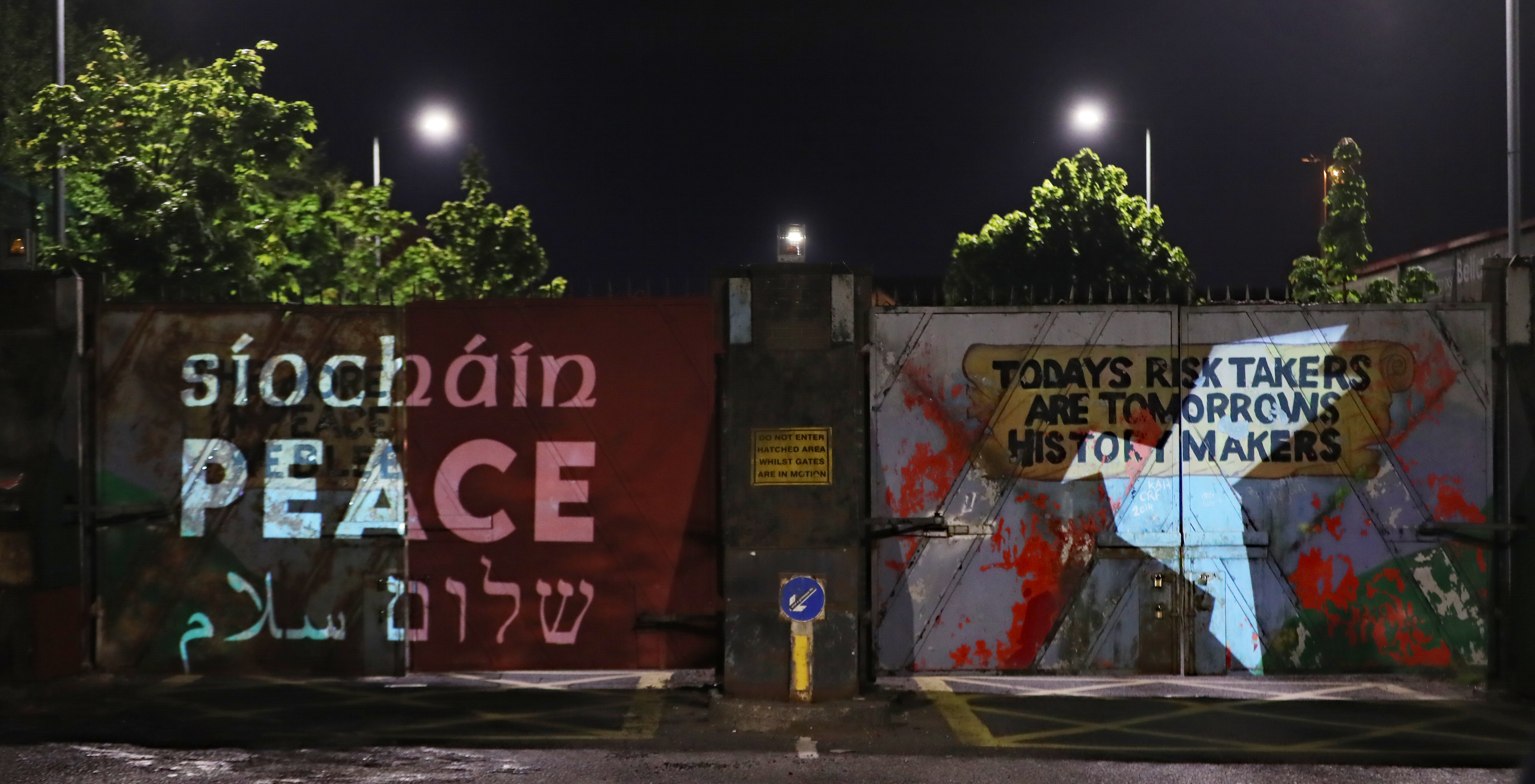 The light show also features a mural in Belfast by Northern Irish Artist Rebecca Lively named ‘The First Supper’ with portraits and parallel life stories of peace and community activists from Northern Ireland, Palestine and Israel. There’s one place left at the table posing the question; “Who’s voice needs to be heard?”