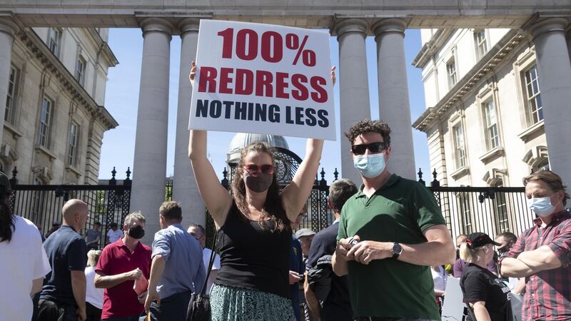 Homeowners outside the Department of the Taoiseach last week during a protest by mica- affected homeowners from Mayo and Donegal seeking 100% redress for the faulty concrete in their homes. Picture: Colin Keegan/ Collins Dublin