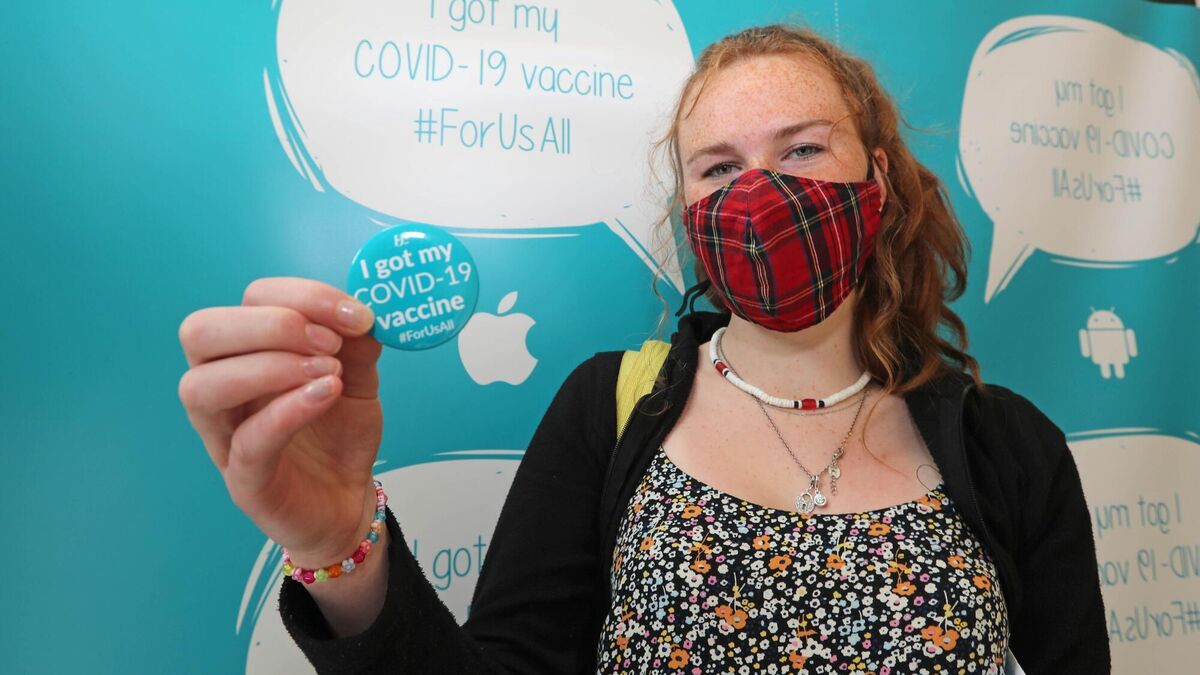 16 year old, Ciara Brady, from Clonakility, after her vacination, at The Clonakilty Covid-19 walk-in vaccination centre at Clonakilty GAA Club, Cork.