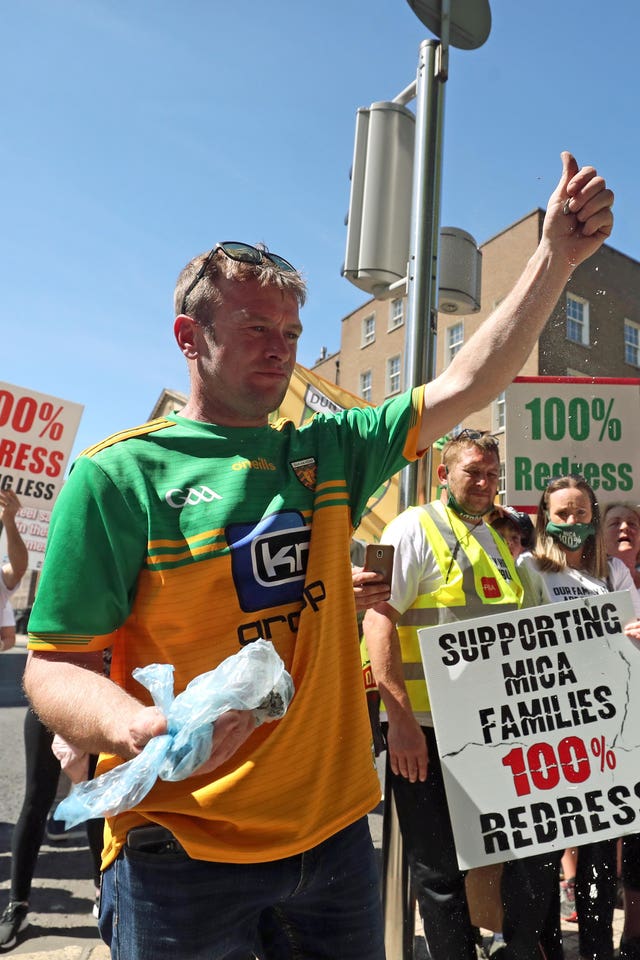 Protesters during a June demonstration in Dublin to demand a 100% redress scheme for homes and properties affected by bricks contaminated with mica (Niall Carson/PA)