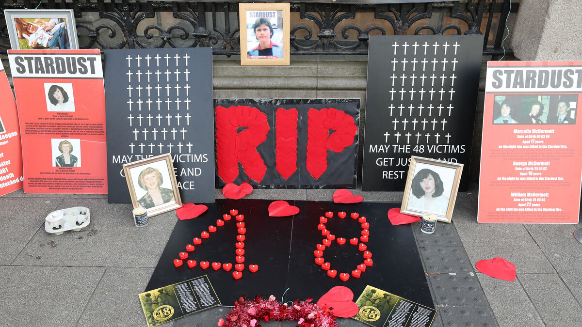 Tributes to the 48 victims of the Stardust nightclub fire in Dublin on Valentine's day in 1981 outside Leinster House in Dublin.