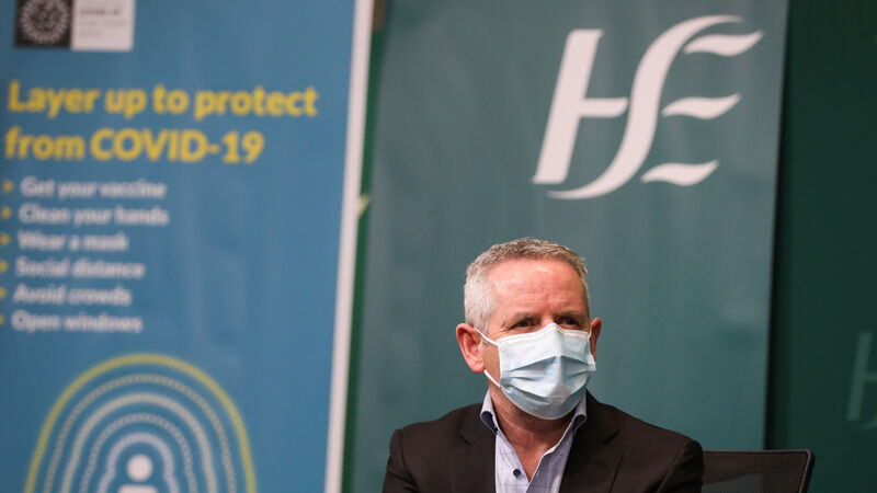 Pictured is HSE CEO Paul Reid speaking to media in Dr Steevens Hospital today at the weekly HSE operational update on the response to Covid-19. Photograph: Leah Farrell / Photocall Ireland