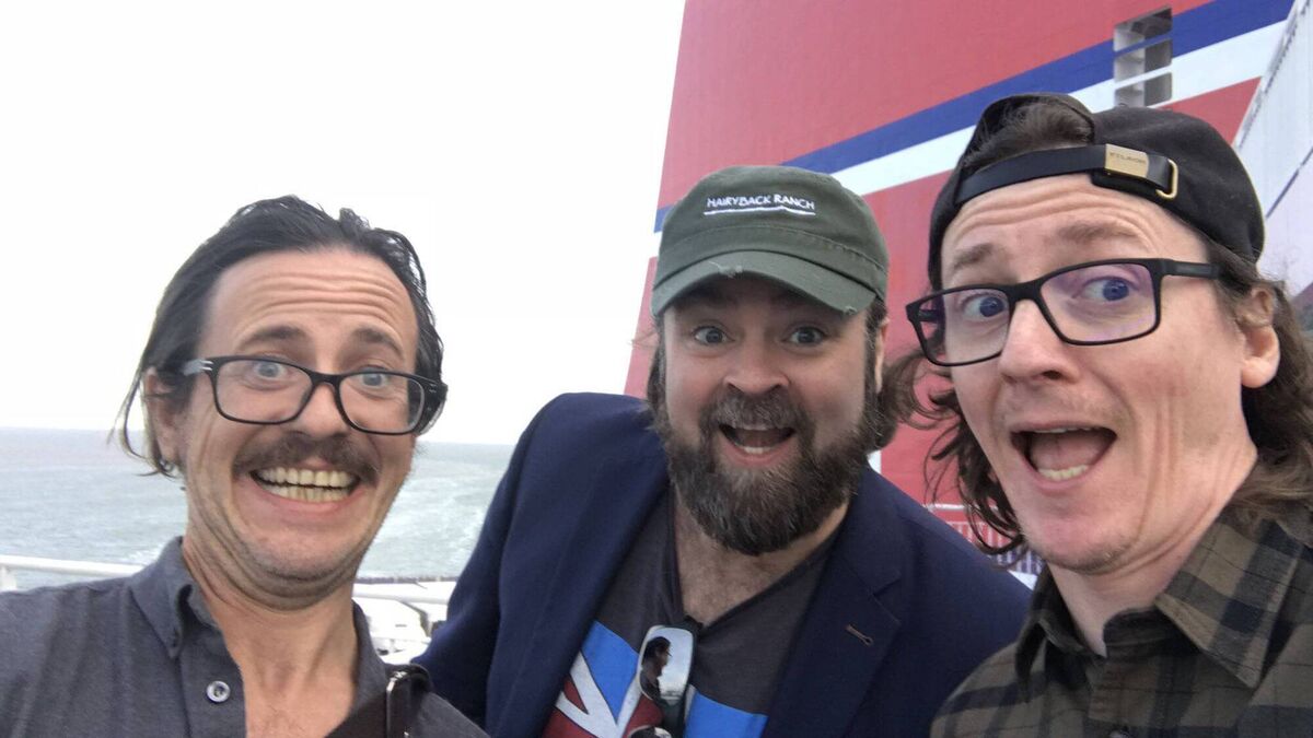 Paul Byrne who died aged 45 with comedian, Glenn Wool, and his brother, comedian Ed Byrne. Picture: Twitter