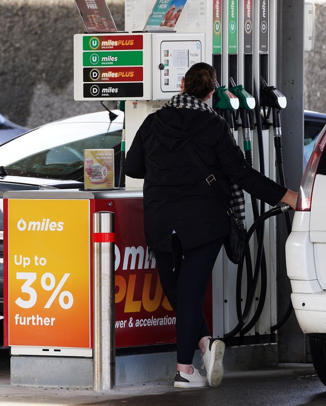Fuel prices on display at a Circle K service station on Glasnevin Avenue in Dublin, following a significant cut in the excise duty on fuel (PA)