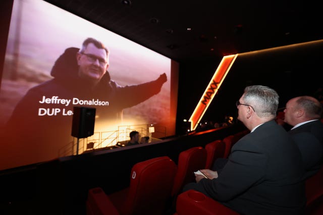 The DUP booked a cinema screen in Dundonald on Monday to showcase a party film on its Five Point Plan for the election campaign.
