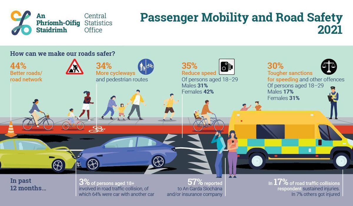 The CSO also found that more than one third of people felt that there is a need to reduce speed to improve road safety, while more than one quarter felt that there should be more appropriate speed limits to the type of road/motorway.Â