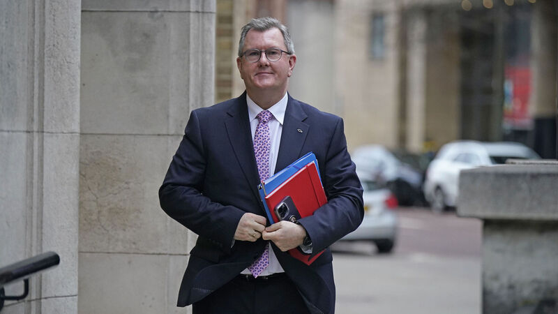 DUP leader Jeffery Donaldson arriving at the BBC studios in Belfast, after Tánaiste Micheál Martin held a series of meetings with Northern Ireland political leaders. Picture: Niall Carson/PA Wire