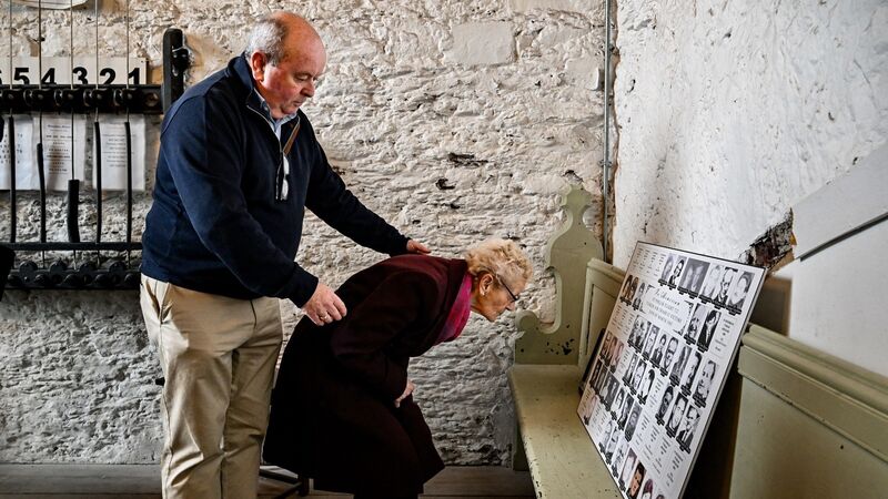 Teresa O’Keeffe from Blackrock is helped by her son Niall to locate her mother & sister among pictures of the victims Tuskar Rock plane crash. Teresa recalls standing in Cork Airport holding the then 6-month-old Niall in her arms and waving her loved ones off on an excursion to London to visit two of her other sisters for Mother’s Day, by the time she got home news of the crash was already on the radio. The body of Teresa’s sister, like many others, was never recovered. Picture: Chani Anderson