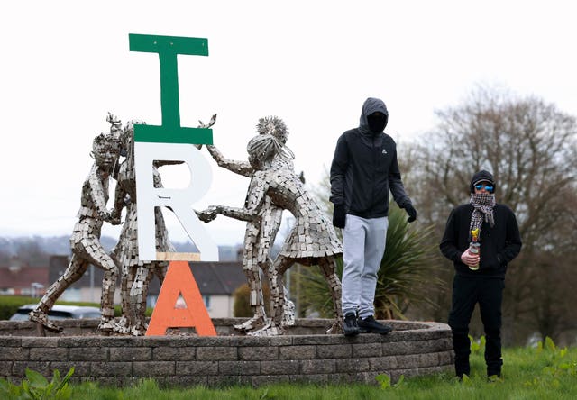 There was a colour party made up of people wearing face coverings, sunglasses and paramilitary-style dress, carrying the Irish flag and a host of republican flags.