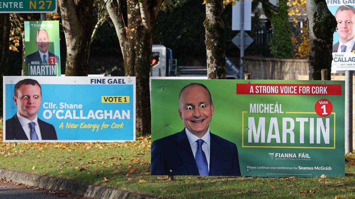 Vandalised election posters on Boreenmanna Road, Cork. While it is not known if the incidents are linked, similarly vandalised posters have appeared in various locations, with the heads removed from some. Picture: Jim Coughlan