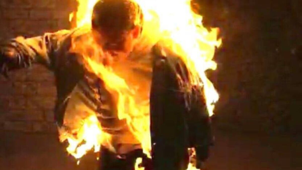 "It’s also put all over any bare skin that’s exposed, so basically your hands face and neck. They put accelerant on your hands, neck and face and in your hair as well. On top of all that, we had someone on hand to make sure we didn’t drown after jumping into the water.