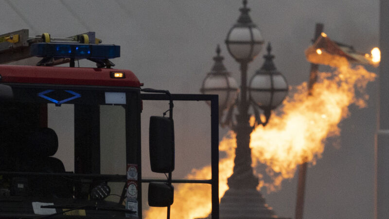 Dublin Fire Brigade and An Garda Siochana on scene of a fire on Georges Dock, IFSC. Picture: Sam Boal/ Collins.