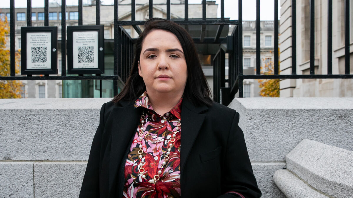 Mandy Kelly outside Government Buildings after her meeting with Simon Harris. She said: 'I have been trying for a long time to have the children on a red notice. Picture: Gareth Chaney