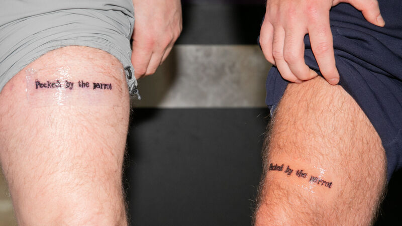 "Pecked by the Parrott" read the fresh tattoo ink on the legs of two fans who returned home after a "heavy" night of celebrations in Budapest.