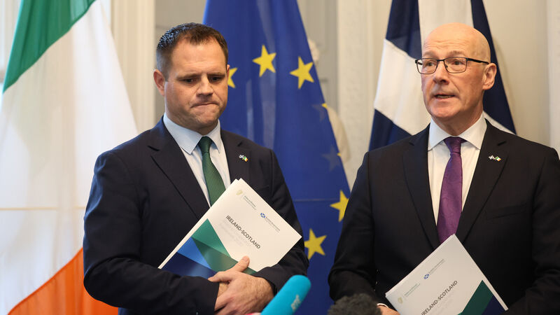 Minister of state at the Department of Foreign Affairs Neale Richmond with Scotland's first minister John Swinney at the launch a new bilateral cooperation framework between the two countries. Picture: Leah Farrell /RollingNews.ie