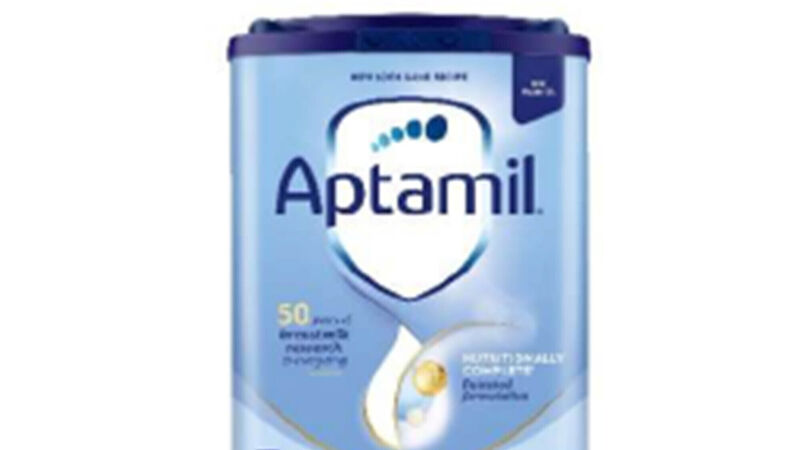 Aptamil infant formula, batches of which have been recalled in Ireland. As many as 60 countries could be involved in recalls of brands including Nestlé's SMA and Danone's Aptamil. Picture: FSAI/PA