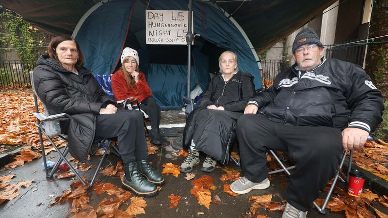 Mary Dunlevy Green, Miriam Moriarty Owens, Mary Donovan, and Maurice Patton O'Connell on hunger strike last November. File piture: Leah Farrell/RollingNews.ie