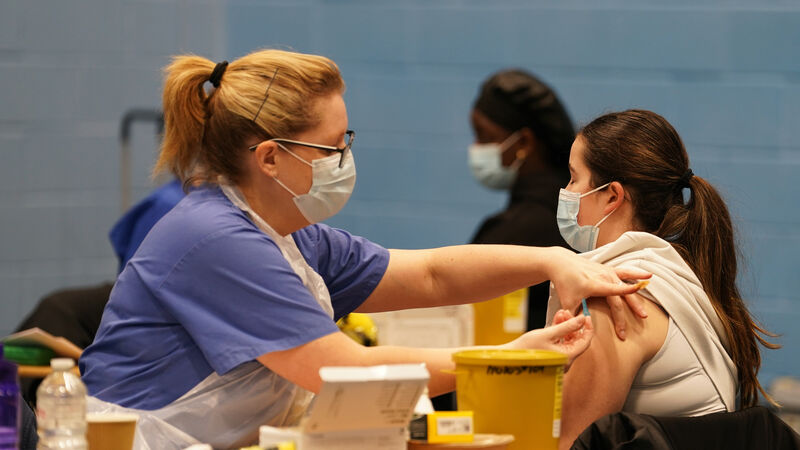 A student receiving an injection at the University of Kent campus in Canterbury.