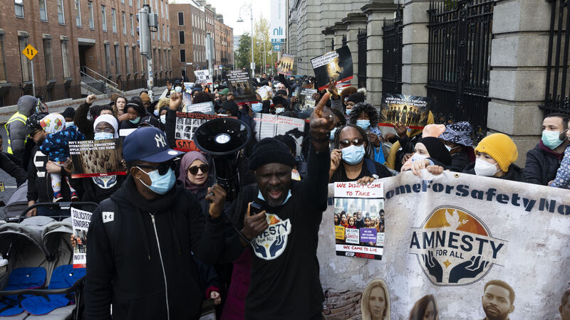 People seeking international protection and asylum seekers protest against deportations outside Leinster House last November. Picture: Sam Boal/Collins