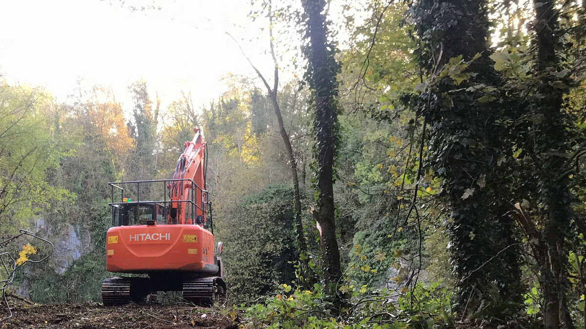 An excavator at a flooded quarry near to Benburb in Co. Tyrone which was drained by police in the search for missing murder victim Charlotte Murray (Rebecca Black/PA)