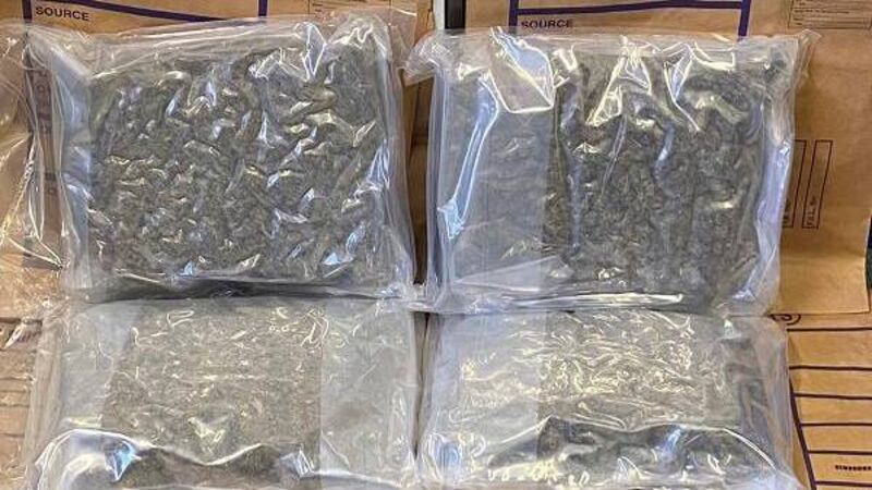 A package containing approximately 4.8kg of suspected cannabis herb was seized. Picture: An Garda Síochána