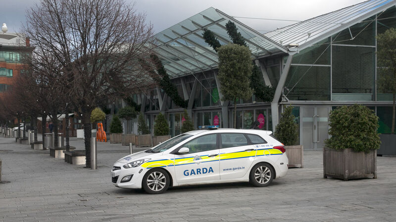 A Garda Car at the CHQ building at The IFSC in Dublin's city Centre investigating the serious assault that occurred on the pedestrian walkway, between Georges Dock and Custom House Quay IFSC Dublin 1 on Wednesday on January 21. Photo: Gareth Chaney/Collins