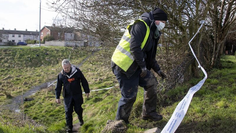 Gardaí on scrubland near Rathmullen Park in Drogheda on Thursday afternoon in the search for the torso of a teenager murdered last January. Picture: Colin Keegan, Collins Dublin