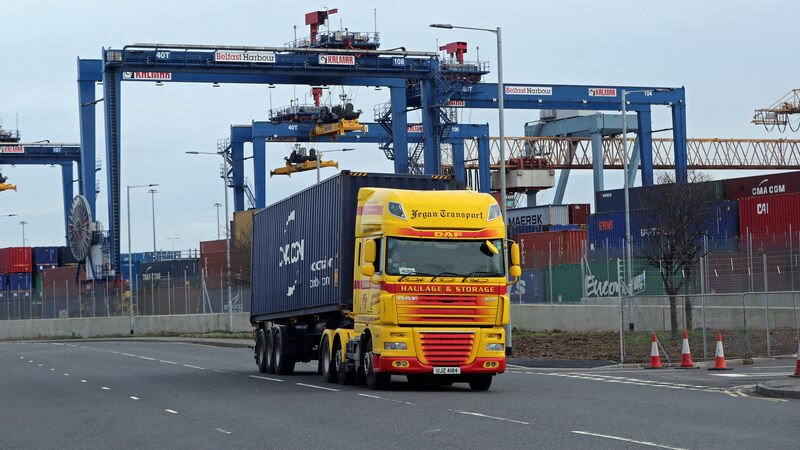 A freight lorry leaving Belfast Port. Picture: Niall Carson/PA