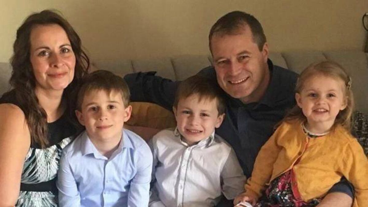 Deirdre Morley, 43, and Andrew McGinley with their three children, nine-year-old Conor (second left), seven-year-old Darragh (centre) and three-year-old Carla (far right).